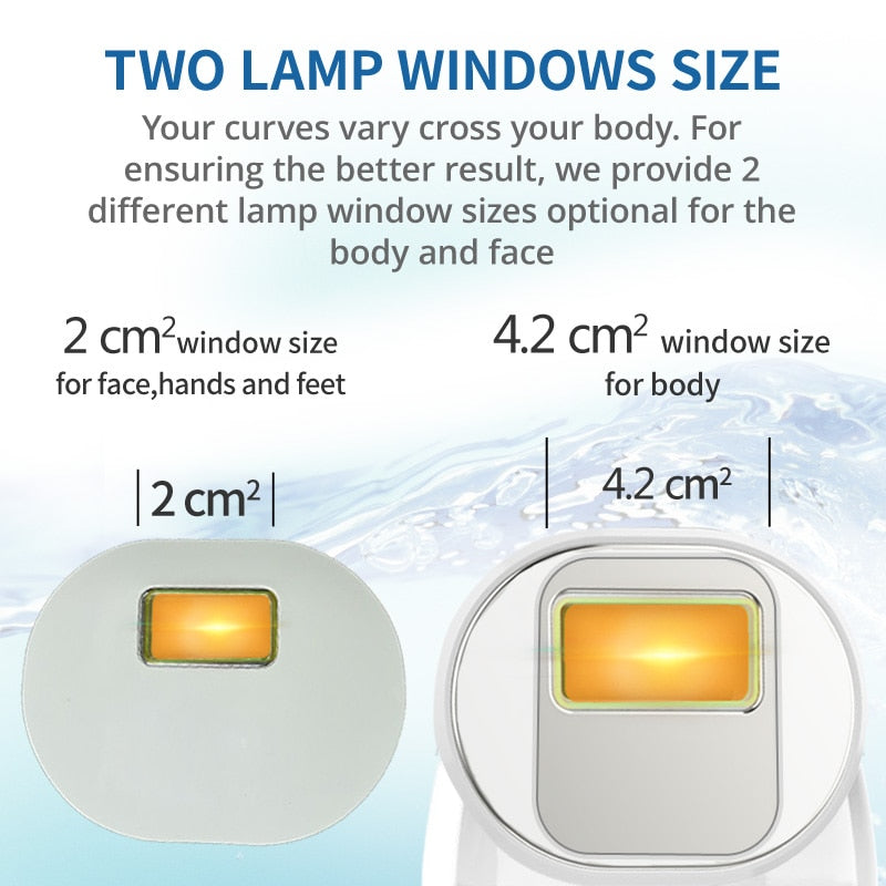 This newest IPL hair removal have two different lamp window sizes so that to suit the different body curve